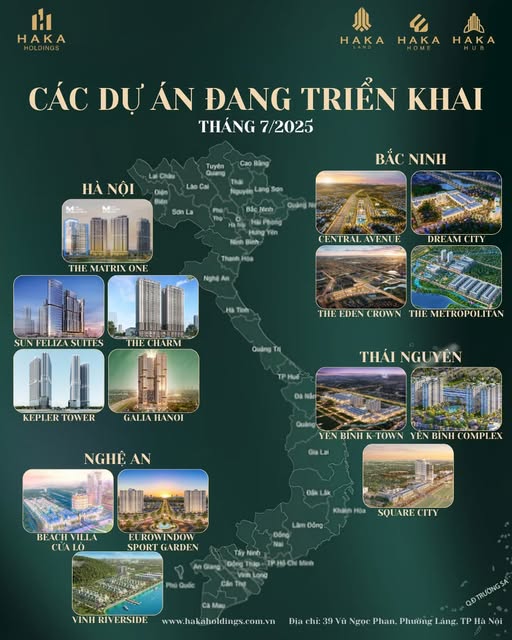 Tại Hà Nội – Thị trường bất động sản quý II/2025 đang trở nên sôi động hơn bao giờ hết với sự trở lại của một loạt thương hiệu đình đám. Haka Land đang sở hữu quỹ hàng khủng bao gồm các dự án lớn từ các chủ đầu tư uy tín Sun Group, MIK, Tân Á Đại Thành như: Sun Feliza Suite, The Matrix One, The Charm, Kepler Tower, Galia Hanoi…